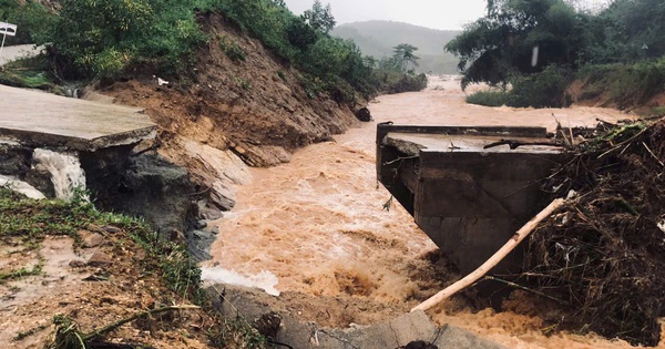 Mưa lớn, nước lũ tràn về đã cuốn trôi cây cầu Nước Bao (thuộc xã Sơn Hà, tỉnh Quảng Ngãi), gây chia cắt 288 hộ dân.