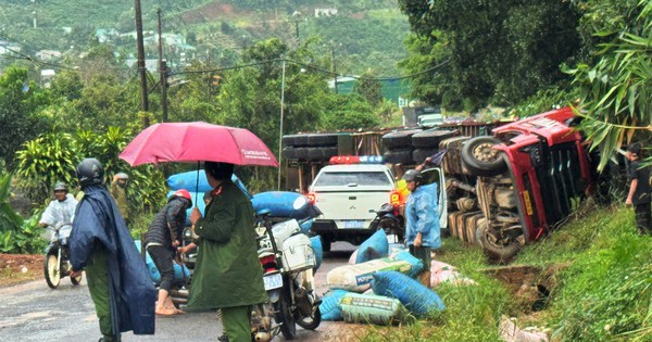 Xe container lật nghiêng đè bẹp ô tô con trên QL28, xã Bảo Lâm 5 (Lâm Đồng) làm 5 người bị thương, trong đó 3 người bị thương nặng.