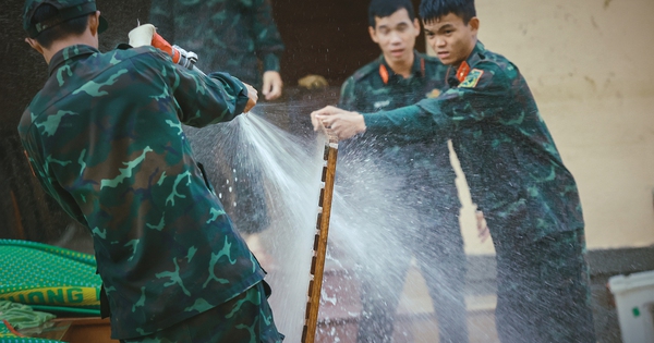 Hơn 100 cán bộ, chiến sĩ Trung đoàn 1, Sư đoàn 2 (đóng quân tại An Khê, Gia Lai) khẩn trương giúp Trường tiểu học Nguyễn Khuyến (P.Quy Nhơn Bắc, Gia Lai) khắc phục hậu quả lũ lụt.