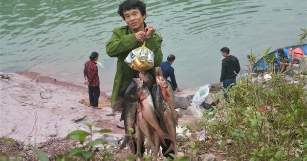 Sau khi hồ Kẻ Gỗ đóng cửa xả tràn, người dân ở xã Cẩm Duệ (tỉnh Hà Tĩnh) rủ nhau thả lưới, bắt được rất nhiều loài cá nước ngọt. Có người còn may mắn bắt được con cá leo 'khủng', nặng hơn 10 kg.