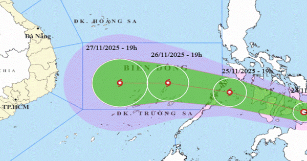 Theo dự báo, sau khi bão số 15 vào Biển Đông, từ ngày 26 - 28.11, khu vực giữa Biển Đông và vùng biển phía bắc khu vực nam Biển Đông có thể có gió mạnh cấp 10 - 11, giật cấp 14.