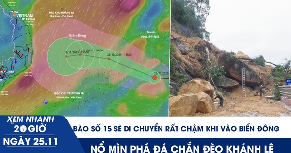 ‘Xem nhanh 20h’ ngày 25.11 có nhiều tin tức đáng chú ý về: Khẩn cấp ứng phó bão số 15, gây sóng biển cao 9 mét; đoàn công tác Bộ Tư lệnh Quân khu 5 kiểm tra khắc phục đèo Khánh Lê;...