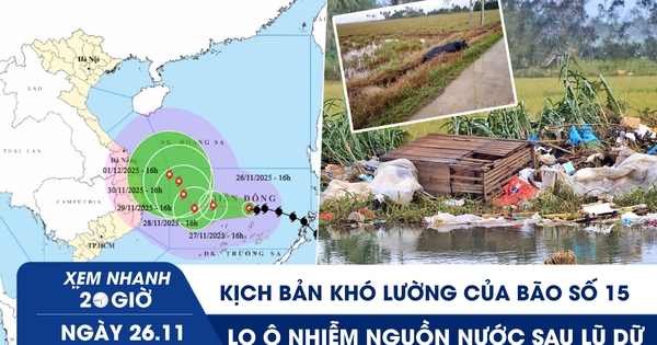 ‘Xem nhanh 20h’ ngày 26.11 có nhiều tin tức đáng chú ý về: Bão số 15 (Koto) duy trì cấp 11, cần theo dõi trong thời gian dài; cả cánh đồng bốc mùi sau lũ dữ: Người Hòa Thịnh lo nguồn nước ô nhiễm