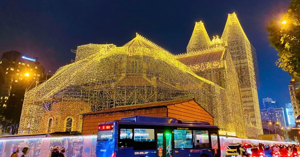 Giữa trung tâm TP.HCM náo nhiệt, khi những ánh đèn đô thị vừa lên cũng là lúc Nhà thờ Đức Bà khoác lên mình "lớp áo" lung linh của mùa lễ hội.