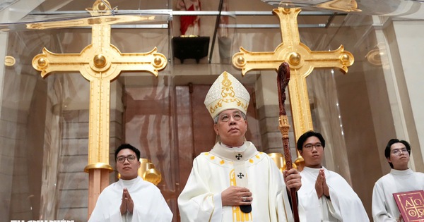 Tổng giám mục Giuse Nguyễn Năng đã làm phép 2 cây Thánh giá mạ vàng ở Nhà thờ Đức Bà Sài Gòn và đặt bên trong lớp kính để người dân vào chiêm ngưỡng.
