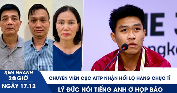 ‘Xem nhanh 20h’ ngày 17.12 có nhiều tin tức đáng chú ý về: Điều tra hơn 150 người đưa hối lộ 24,5 tỉ cho chuyên viên Cục An toàn thực phẩm; Lý Đức gây tranh cãi khi nói tiếng anh ở họp báo, tự tin chinh phục HCV SEA Games;...